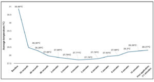 Table 2: Average skin surface temperature change of subjects from baseline at first to last timepoint (n=50)